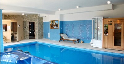Допълнителна информация:http://www.bellatravel.eu/tour_967.htmlЕлегант Лукс” 4* и "Елегант Спа" 4* БАНСКО Елегант Лукс” и "Елегант Спа" са 4-звезднни ваканционни комплекси - отличната локация, удобно близо до главния лифт, който е само на 3 минути и само на 7 минути до стария град. на Банско От всеки от апартаментите се разкриват красиви гледки към трите планински вериги - Пирин, Рила и Родопите. Насладетесе на 5 звездно обслужване и услуги БАСЕЙН С МИНЕРАЛНА ВОДА ДЖАКУЗИ ФИНЛАНДСКА САУНА ИНФРАЧЕРВЕНА САУНА ПАРНА БАНЯ ТУРСКА БАНЯ Предлага уютен лоби бар, луксозен ристорант с разнообразна кухня и жива музика. Гостите на комплекса могат да се възползват от 24 часа рецепция и рум сървиз, асансьор, подземен В хотела: В Елегант Лукс - СПА център включващ: закрит плувен басейн, джакузи, финландска сауна, инфрачервена сауна, парна кабина, парна баня, турска баня, ароматерапии, разнообразие от масажи, фитнес център;• билярд В Елегант Спа - Спа център на два етажа, който включва вътрешен плувен басейн, джакузи, турска баня, парна баня, инфрачервена сауна, финландска сауна, фитнес, парна кабина, солариум, масажни кабинети, разнообразие от терапии и салон за красота. Цена при настаняване на 6 души в триспален апартамент: Пакетна цена на човек за две нощувки със закуски и празнична вечеря: 120 лв. Пакетна цена на човек за три нощувки със закуски и празнична вечеря: 145 лв. Цена при настаняване на 3 или 4 души в двуспален апартамент или 3 души в едноспален апартамент: Пакетна цена на човек за две нощувки със закуски и празнична вечеря: 125 лв. Пакетна цена на човек за три нощувки със закуски и празнична вечеря: 150 лв. Цена при двойно настаняване в студио: Пакетна цена на човек за две нощувки със закуски и празнична вечеря: 135 лв. Пакетна цена на човек за три нощувки със закуски и празнична вечеря: 160 лв. Цена при двойно настаняване в апартамент: Пакетна цена на човек за две нощувки със закуски и празнична вечеря: 150 лв. Пакетна цена на човек за три нощувки със закуски и празнична вечеря: 175 лв. Цените включват: Избраният от вас брой нощувки с богата закуска на бюфет Празнична вечеря на 08.12 с жива музика, DJ парти и много емоции (3-степенно меню, 1 бр. безалкохолно, 1 бр. минерална вода, Българска водка/ракия – 50 гр., Чаша червено или бяло вино) Ползване на вътрешен басейн с топла минерална вода, джакузи, финландска сауна, инфрачервена сауна, парна баня, турска баня, фитнес 20% намаление на всички Спа процедури, предлагани в хотела Wi-Fi Интернет Външен паркинг Хотелска застраховка, туристическа такса, ДДС |