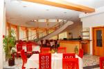 Допълнителна информация:Нека да празнуваме заедно в хотел Кораба - к.к Чайка1 нощувка на човек, настанен в двойна стая с празничен куверт 66.00 лв., настанен в тройна стая -63.00 лв. Пакетната цена е на човек, настанен е Двойна или Тройна стая и включва: « нощувка със закуска на блок маса « празнична вечеря на 08.12.2012 г. « DJ за вечерта и томбола с награди/голямата награда е почивка за двама сезон 2013г - 2 нощ в хотел Малина -к.к.Зл.пясъци « безжичен интернет във публичните зони на хотел «ползване на фитнес « безплатен паркинг « късно освобождаване на стаите на 09.12.2012г – до 15.00 часа« късна закуска на 09.12.2012г –от 11.00 часа « застраховка, туристически данък и ДДС Доплащане: « Доплащане за следваща нощувка – 15 лв. на човек на вечер в двойна стая или тройна стая с включена закуска Условия за резервация: Резервацията се счита за потвърдена , при извършено в брой авансово плащане, в размер на 50% от сумата по направената резервация в срок от 7 дни.Остатъка от сумата се заплаща до 30.11.2012г.За анулации, направени след тази дата се дължи неустойка в размер на 100% от сумата. ПРАЗНИЧНО МЕНЮ: « ракия/водка-0.050гр. « Безалкохолно – 1бр. « Минерална вода – 1бр. -0.500мл. « Салата „Асорти“ –домати, краставици, салата снежанка, руска салата, « Плато мезета, сирена – 0.50гр. « Основно ястие по избор : пилешко шишче, пълнено пилешко кюфте, пилешко карначе ИЛИ свинско шишче, пълнено свинско кюфте, свинско карначе с гарнитура/пикантни пържени картофи,задушени зеленчуци/ « 1 чаша вино или 1 бира « пърленка « десерт – микс от сладки изкушения *“такса тирбушон“ за внесени алкохолни напитки – 1лв. на човек Хотелът представлява двуетажна сграда , състои се от 33 двойни и тройни стаи и 4 апартамента с кухненски бокс.Хотелът е реконструиран през 2008г. В хотела: сейф, лоби-бар, ресторант, паркинг, такси, автомобили под наем, външен басейн.Във фоайето на хотела – сателитна телевизия. Всички стаи са с морски изглед Стаите са оборудвани с Две или три отделни легла и канапе , санитарен възел с душ и сушоар, балкон, телевизор със сателитни програми, телефон, хладилник и климатик. Паркингът разполага с 35 места за паркиране. Разположение:Хотелът се намира в района на КК”Златни пясъци”, КК „Чайка”, на 18 км от Варна и на 23 км от летището.Разстоянието до плаж Кабакум и плаж Златни пясъци е еднакво - 600 метра. Територията на комплекса представлява градина с многогодишна растителност, с открита лятна тераса с изглед към морето. |