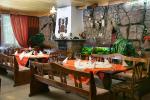 Допълнителна информация:Ваканционно селище "Манастира" се намира на 7 км. от Велико Търново и на 2 км. от Арбанаси. Разположено е в красива горска местност в непосредствена близост до манастир "Св. Св. Петър и Павел", известен още с името Лясковски манастир.Природата и характерните за този край спокойствие и тишина предразполагат за една приятна и незабравима почивка. Районът е подходящ, както за весели тържества, така и за релакс, еко разходки, спорт, колоездене и езда в близката конна база в с. Арбанаси. Пакетни цени: Една нощувка със закуска и празнична вечеря: 55 лв. Две нощувки, 2 закуски и празнична вечеря: 75 лв. Настаняване в стаи с 2 и 3 легла, санитарен възел, телевизор. Празнично Меню: Ракия 0.050 мл. Безалкохолно 2бр. Ордьовърна салата „Манастира”- 400 гр. Шпикован свински врат със сос „Демиглас”, картофено пюре и задушени зеленчуци Питка Деликатесни колбаси 50 гр. Паста Вино – 0.250 л. Дисководещ в празничната вечер. Условия за резервация: Резервацията се счита за потвърдена при внасяне на депозит в размер на 30% от сумата. |