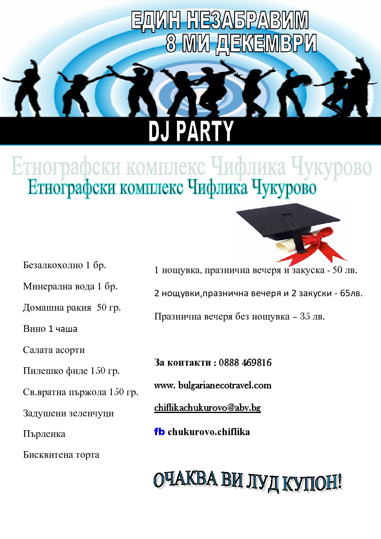 Допълнителна информация:Офертата е за 8ми декемри 2012 г., можете да видите чрез линка: https://www.facebook.com/chukurovo.chiflika |
